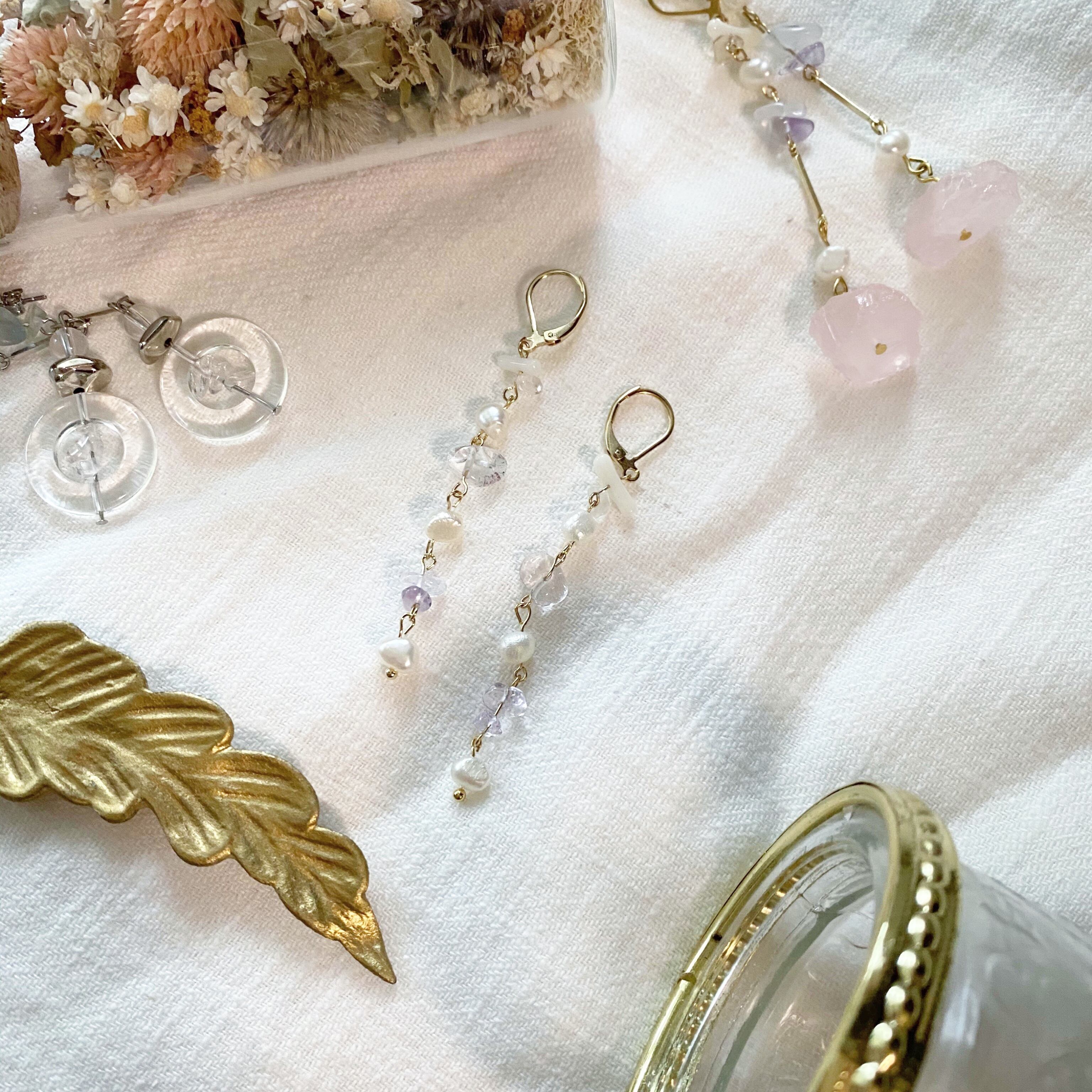 小粒のパールと天然石を組み合わせたフックピアス✳︎